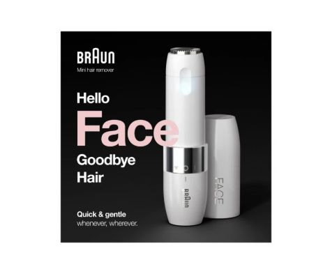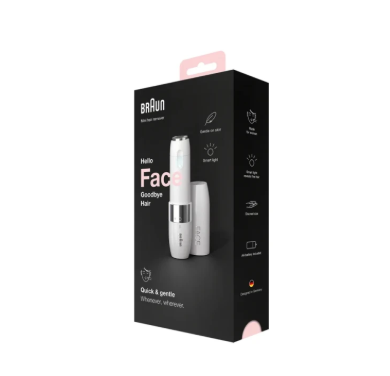 ماشین اصلاح موی صورت بانوان براون مدل FS1000 با تیغههای دقیق ضدحساسیت، چراغ هوشمند داخلی، سر قابل شستشو و عملکرد باتری قلمی برای اصلاح ملایم و ایمن موهای صورت