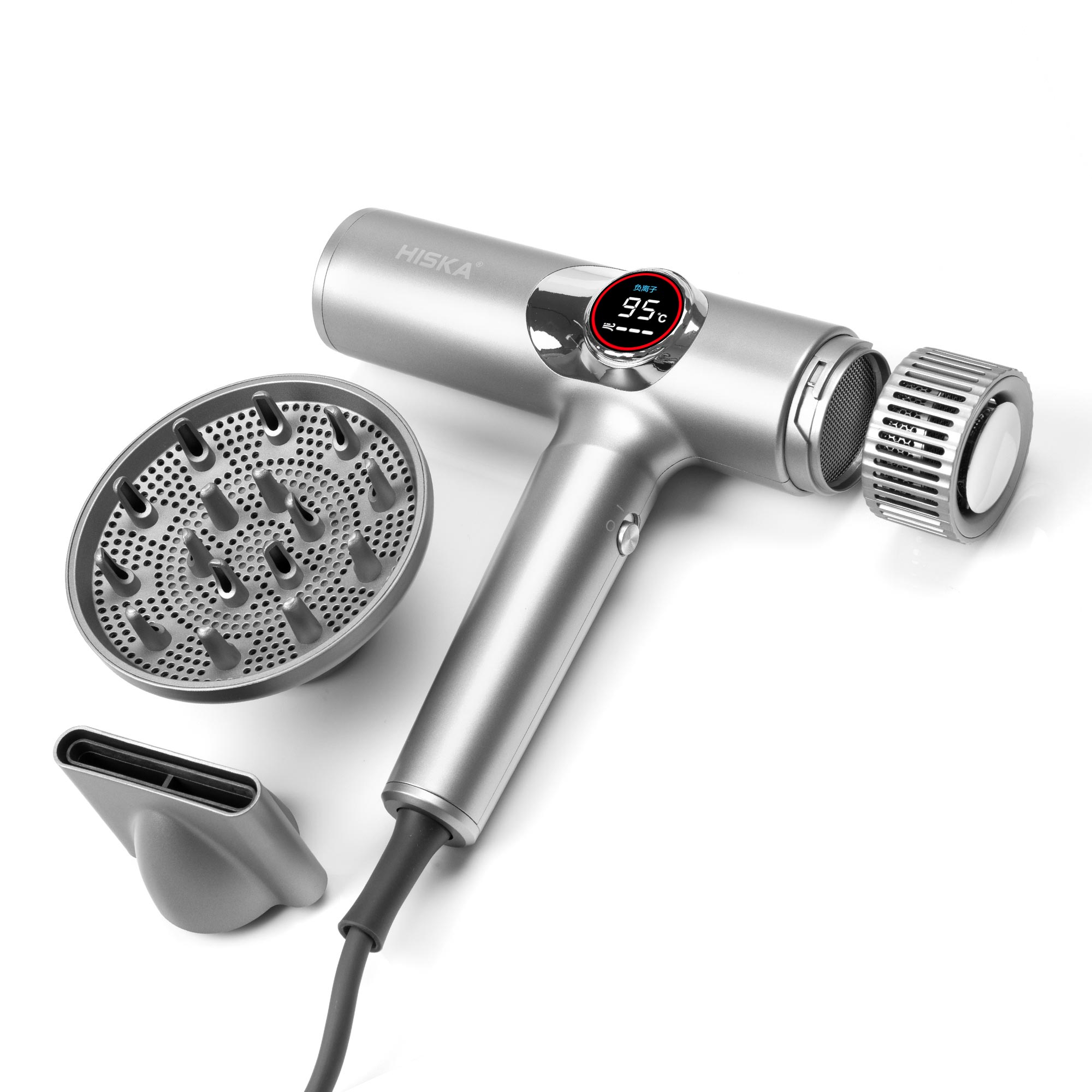 سشوار هوشمند هیسکا با نمایشگر دیجیتالی، موها را ابریشمی میکند.