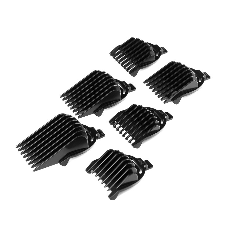 این مجموعه با ۶ شانه در سایزهای مختلف عرضه میشود که طول اصلاح مو را بین اعداد ۱، ۲، ۳، ۶، ۹ و ۱۲ میلیمتر تنظیم میکند. اندازه شانهها روی آنها حک شده است. همچنین یک پایه نگهدارنده، روغن مخصوص تیغهها، برس تمیزکننده و کابل شارژ یک متری USB به تایپ C نیز در بسته وجود دارد.