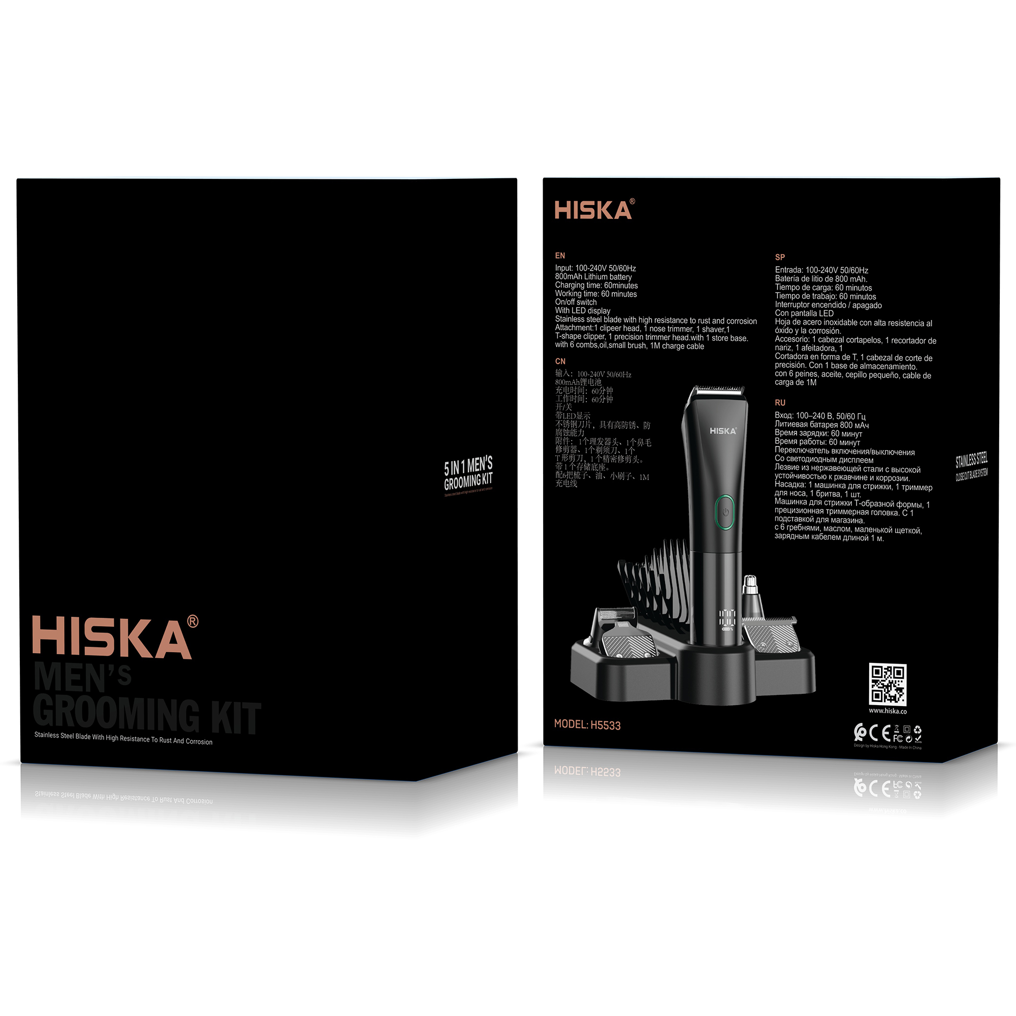 ماشین اصلاح 5 کاره هیسکا مدل H5533 مجهز به نمایشگر LED است که وضعیت شارژ و سرعت کار را نشان میدهد. باتری لیتیومی ۸۰۰ میلیآمپری آن تنها در ۶۰ دقیقه شارژ میشود و یک ساعت استفاده مداوم را ممکن میسازد. قابلیت استفاده با برق و باتری نیز انعطاف بالایی در شرایط مختلف فراهم میکند.