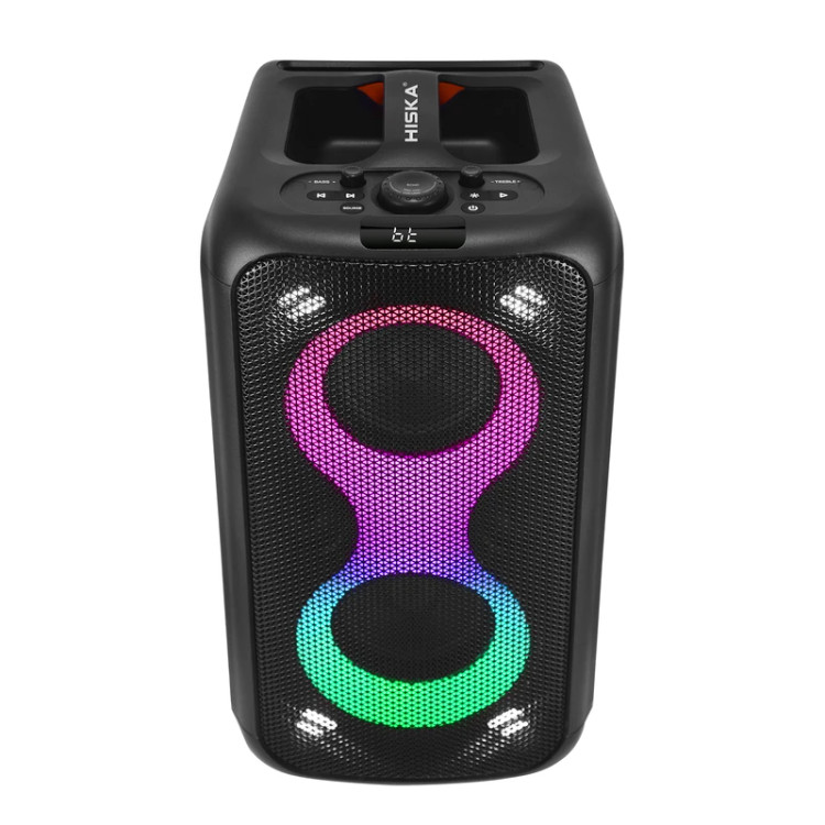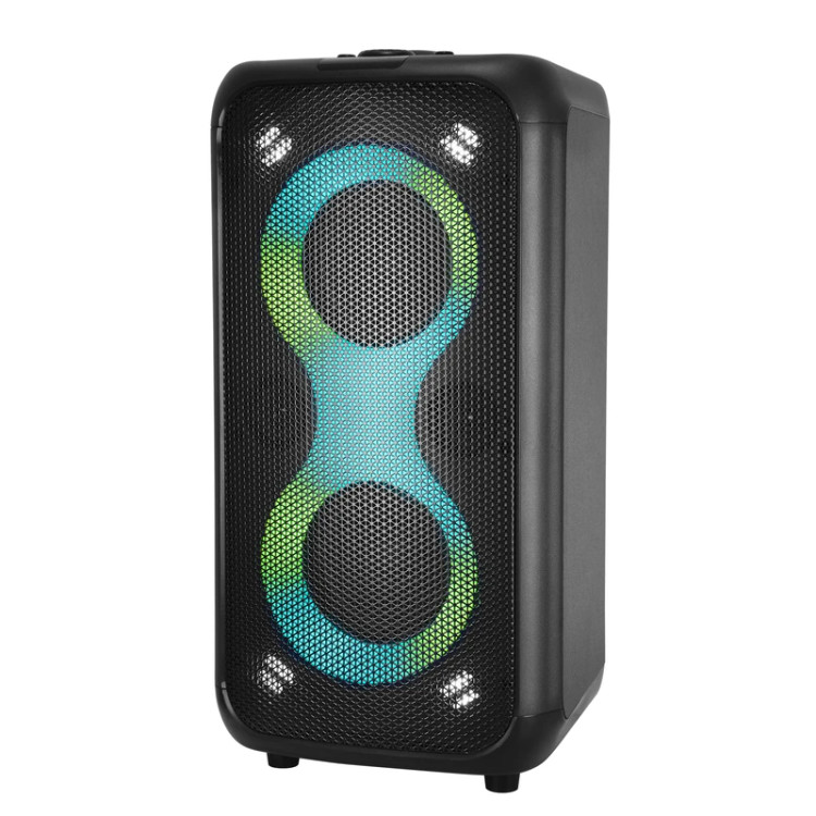 صدایی شفاف، بلند و پرقدرت را ارائه میدهد. ترکیب دو بلندگوی ۵.۲۵ اینچی با بیس قوی و دو تیوتر ۲ اینچی، پوشش صوتی کامل و باکیفیتی را فراهم میکند. بدنه چوبی همراه با نمای جلویی از پلاستیک مقاوم و توری فلزی، ظاهری حرفهای و مستحکم به دستگاه داده است. این اسپیکر از ورودیهای متنوعی مانند USB، بلوتوث، AUX، رادیو FM، و کنترل از راه دور پشتیبانی میکند و همچنین دارای نمایشگر دیجیتال و قابلیت TWS برای اتصال بیسیم همزمان به اسپیکر دیگر است. باتری قدرتمند ۴۰۰۰ میلیآمپری آن با ولتاژ ۱۱.۱ ولت، استفاده بلندمدت و بدون نیاز به برق را ممکن میسازد. افکت صدای EQ و کیفیت صدای Mega-BASS تجربهای جذاب و غنی از موسیقی را فراهم میکنند. ورودی میکروفن و گیتار این امکان را فراهم میسازد تا از این دستگاه بهعنوان آمپلیفایر نیز استفاده شود. همچنین چراغهای رنگی پویا و نورهای استروبی که با ریتم موسیقی هماهنگ میرقصند، جلوهای چشمگیر به مهمانیهای شما میبخشند.